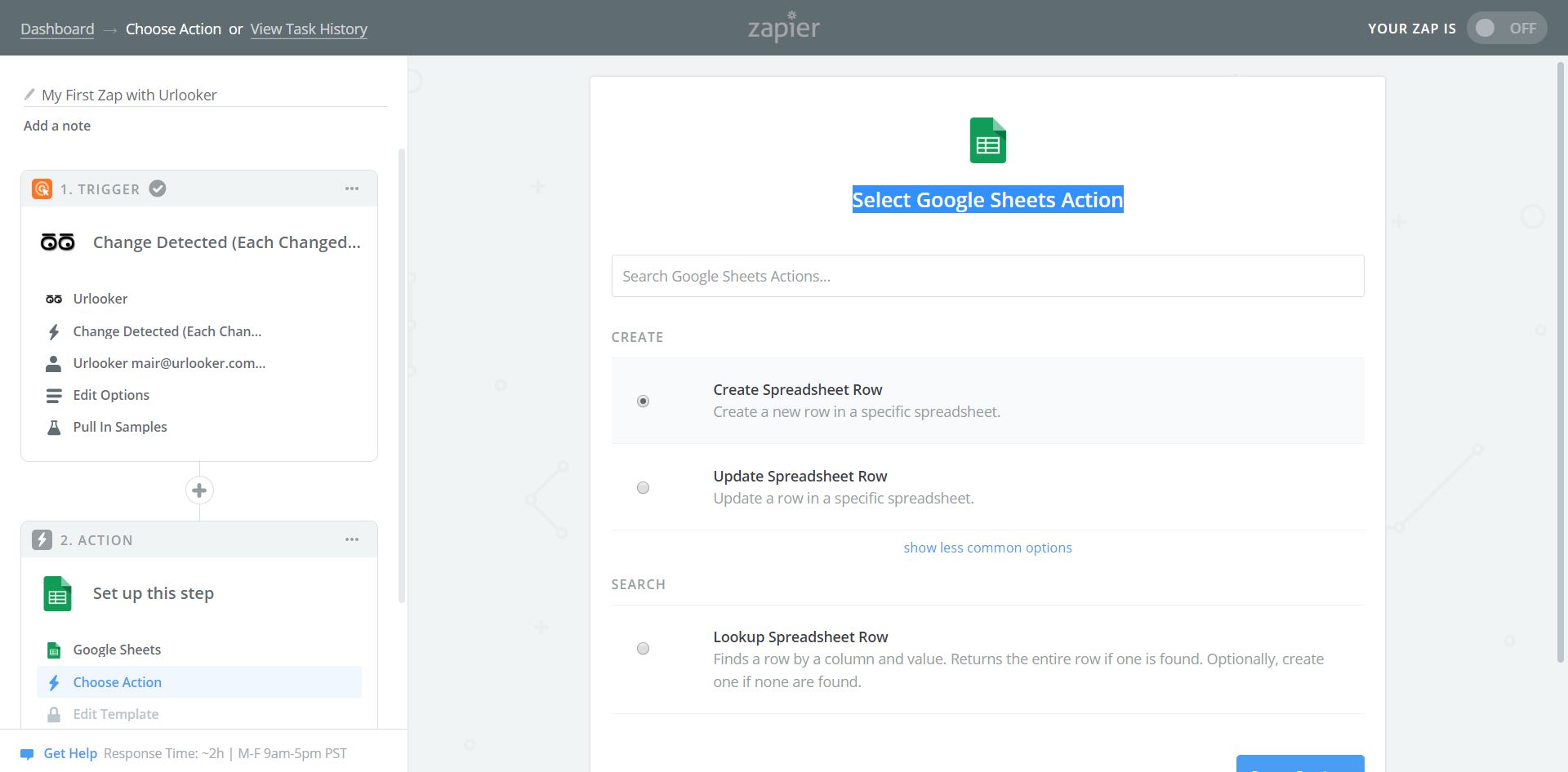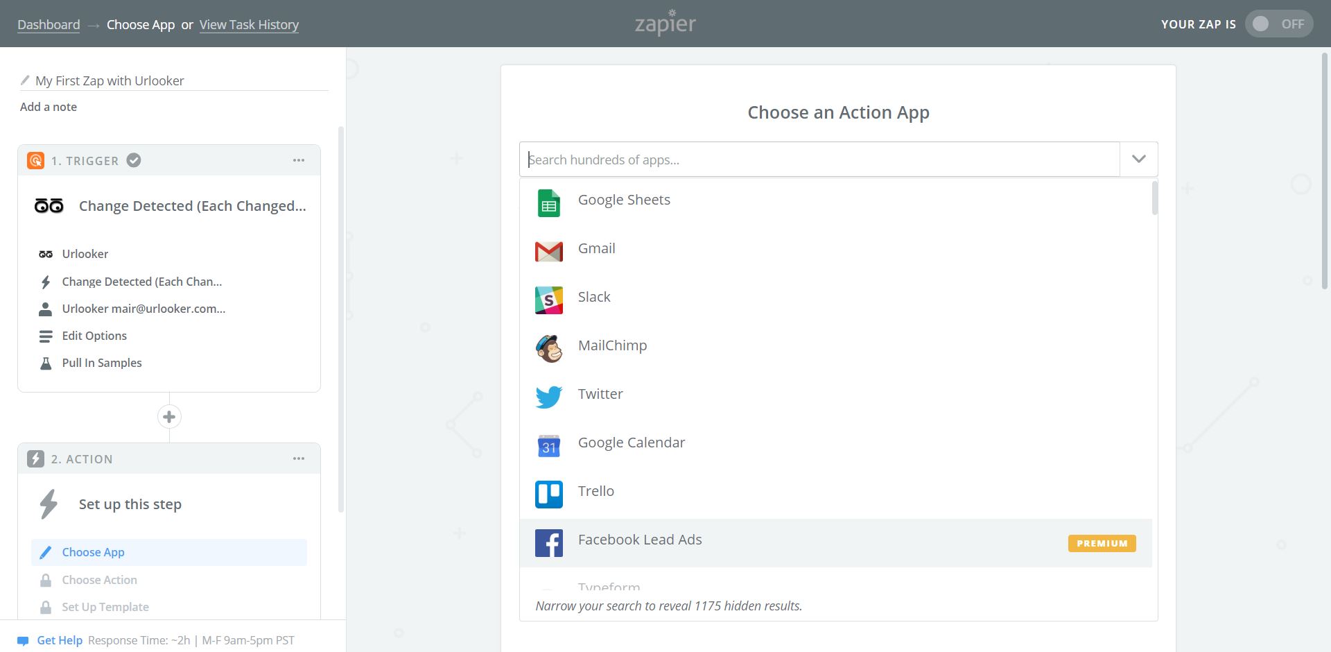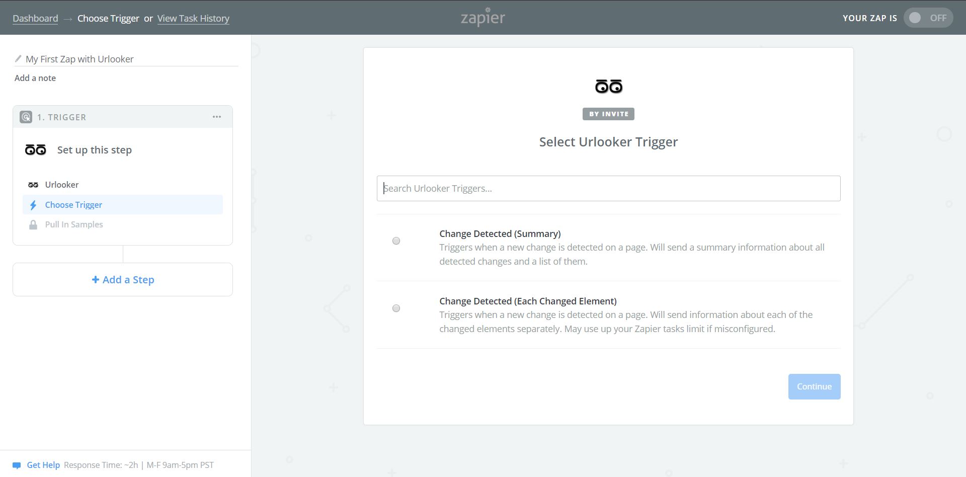 Step 3: Select Urlooker trigger: Summary or Each Changed Element